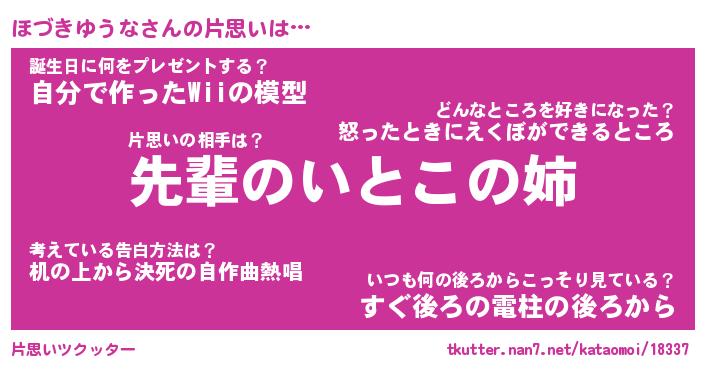 | ヘコむあだ名 | 『ほづにゅー』『なまこ酢』 |