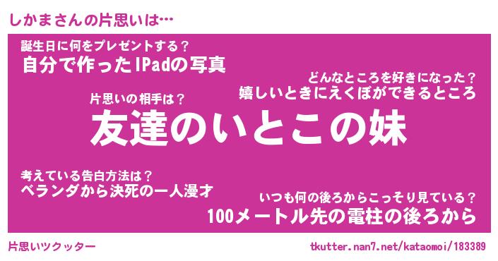 | 意味不明あだ名 | 『ペロリンしかま』『しかまフォーエバー』 |
