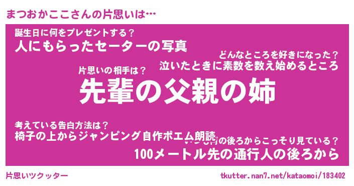 | 胡散臭い通販商品みたいなあだ名 | 『モテモテ間違いなし水晶球…その名も「まつおかここ」』 |