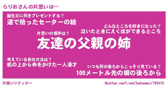 | 意味不明あだ名 | 『ペロリンらりお』『らりおフォーエバー』 |