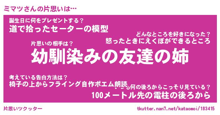 | ファンタジー風あだ名 | 『ミマフェル』『エターナルミマツー』 |