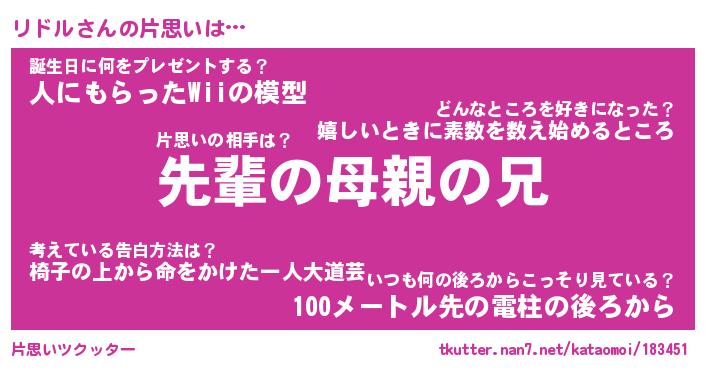 | ヘコむあだ名 | 『リドにー』『つくし』『リドを』 |