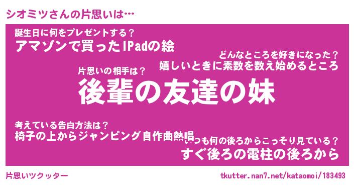 | ファンタジー風あだ名 | 『シオフェル』『エターナルシオミツー』 |