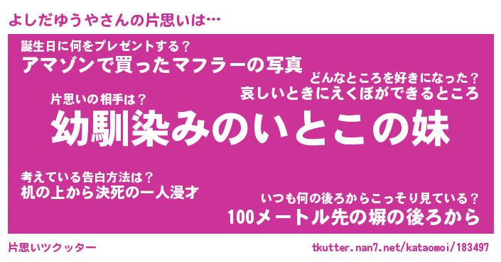 | 恥ずかしいあだ名 | 『プリティーよしだゆうや』『よしっちょ』 |