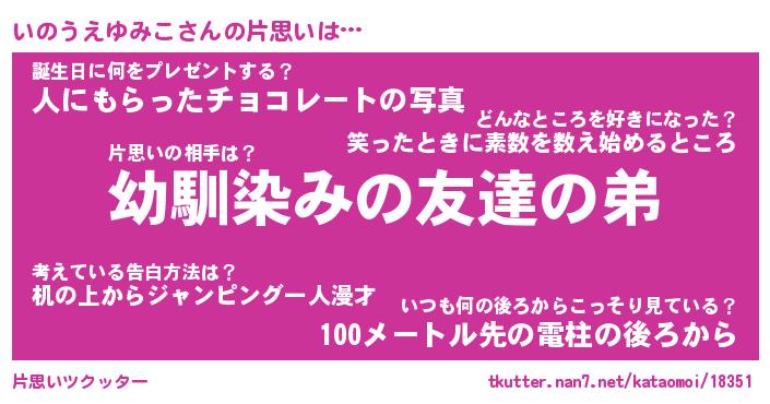 | 女子向けラノベタイトル風あだ名 | 『(仮)いのうえゆみこのやんごとなき事情』 |