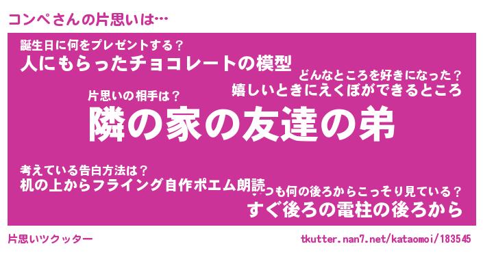 | ポケモン風あだ名 | 『コンチュウ』『コンペダネ』 |