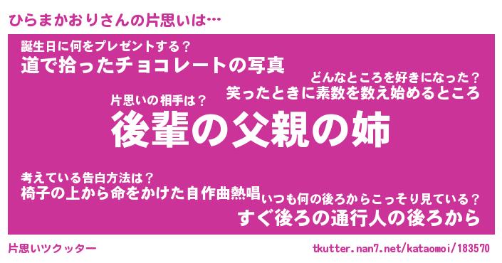 | 胡散臭い通販商品みたいなあだ名 | 『億万長者になれるブレスレット…その名も「ひらまかおり」』 |