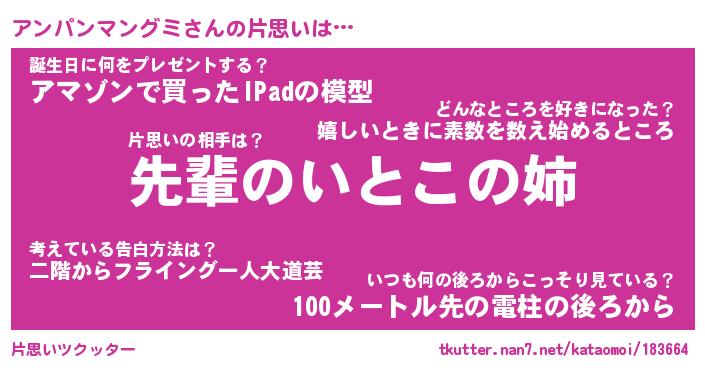 | 胡散臭い通販商品みたいなあだ名 | 『モテモテ間違いなし水晶球…その名も「アンパンマングミ」』 |