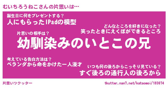 | ヘコむあだ名 | 『むいもー』『つくし』『むいっちょ』 |