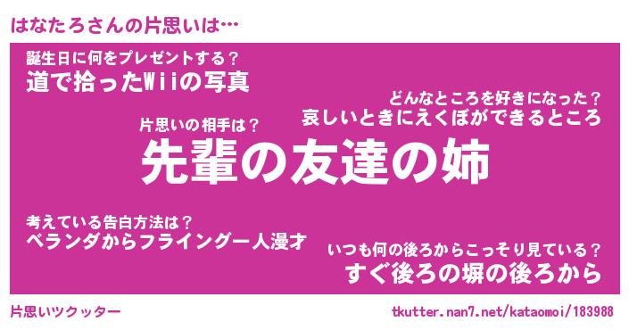 | 意味不明あだ名 | 『ペロリンはなたろ』『永久保存はなたろ』 |