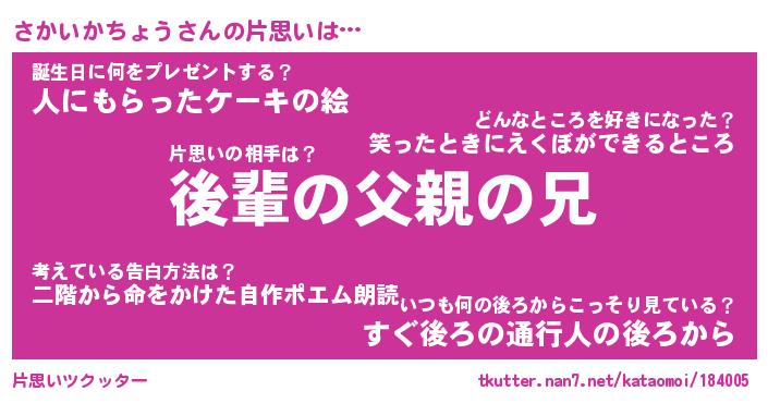 | 胡散臭い通販商品みたいなあだ名 | 『モテモテ間違いなし水晶球…その名も「さかいかちょう」』 |
