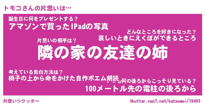 | 意味不明あだ名 | 『ペロリントモコ』『トモコフォーエバー』 |