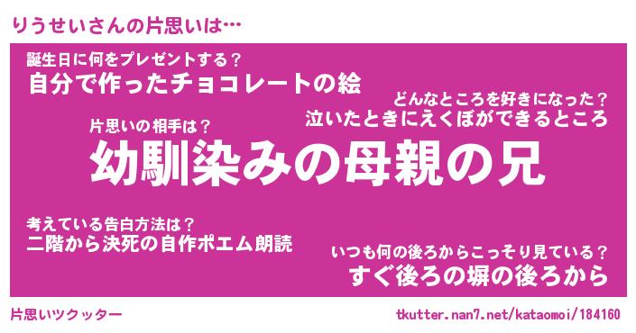 | ヘコむあだ名 | 『りうにー』『なまこ酢』『りうを』 |