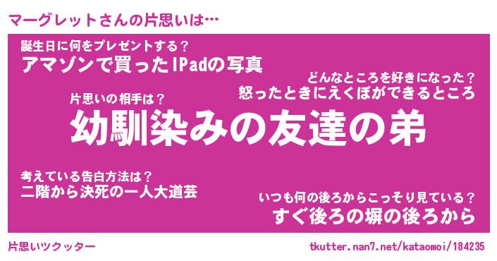 | 胡散臭い通販商品みたいなあだ名 | 『必ず成功する霊験あらたかなお札…その名も「マーグレット」』 |