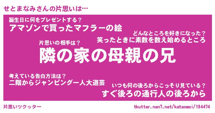 | 胡散臭い通販商品みたいなあだ名 | 『必ず成功するブレスレット…その名も「せとまなみ」』 |