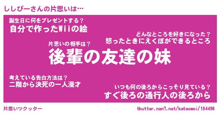 | ヘコむあだ名 | 『ししっふぃ~』『牛乳』『ししっ子』 |