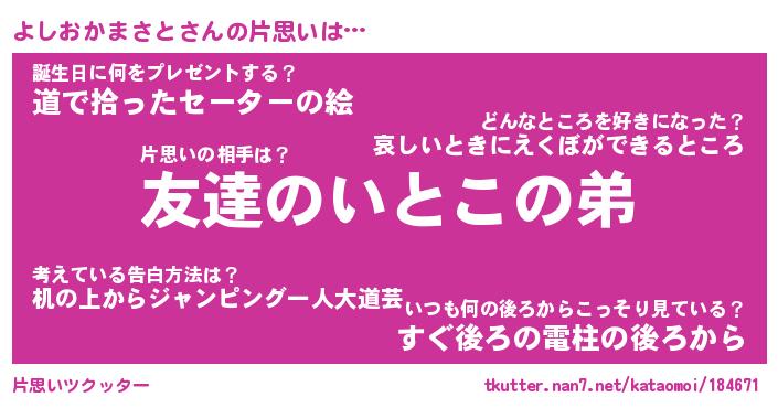 | ヘコむあだ名 | 『よしにゅー』『豆乳』『よしっ子』 |