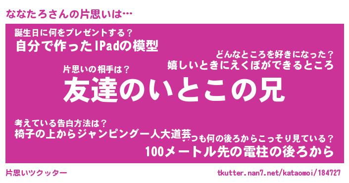 | 意味不明あだ名 | 『ペロリンななたろ』『永久保存ななたろ』 |