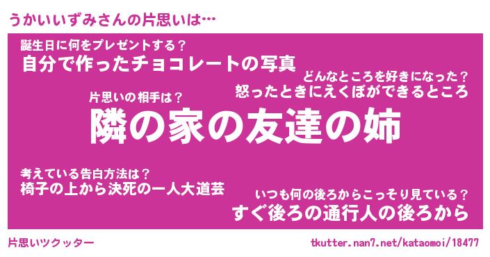 | 男性向けラノベタイトル風あだ名 | 『うかいいずみの憂鬱』 |