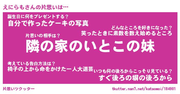 | 肩書あだ名 | 『えにらも店長』『えにらも総理大臣』 |