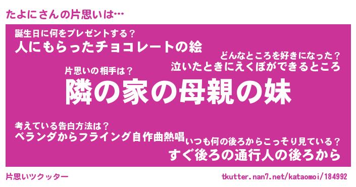 | ヘコむあだ名 | 『たよにー』『レバニラ』『たよを』 |