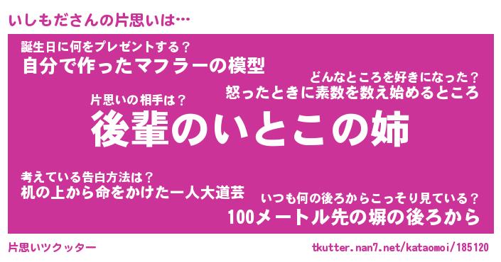 | ヘコむあだ名 | 『いしにゅー』『つくし』『いしを』 |