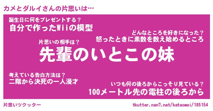 | ヘコむあだ名 | 『カメにゅー』『つくし』『カメお』 |