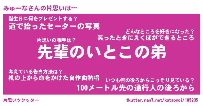 | ヘコむあだ名 | 『みゅにゅー』『牛乳』『みゅっぺ』 |