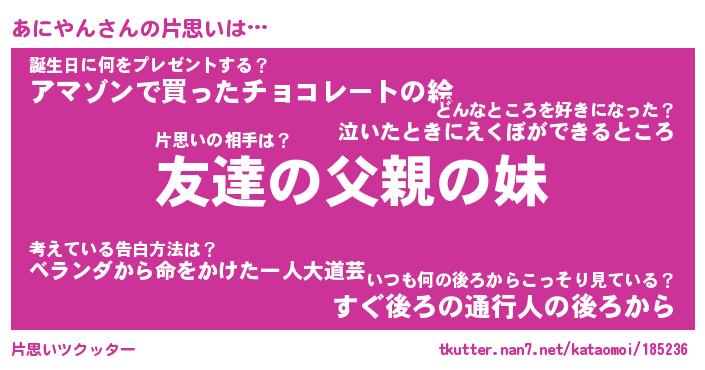 | ヘコむあだ名 | 『あににゅー』『なまこ酢』『あにを』 |