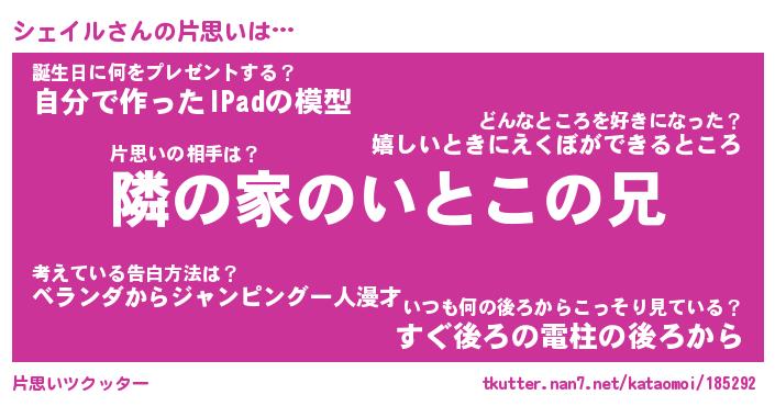 | 意味不明あだ名 | 『ペロリンシェイル』『永久保存シェイル』 |