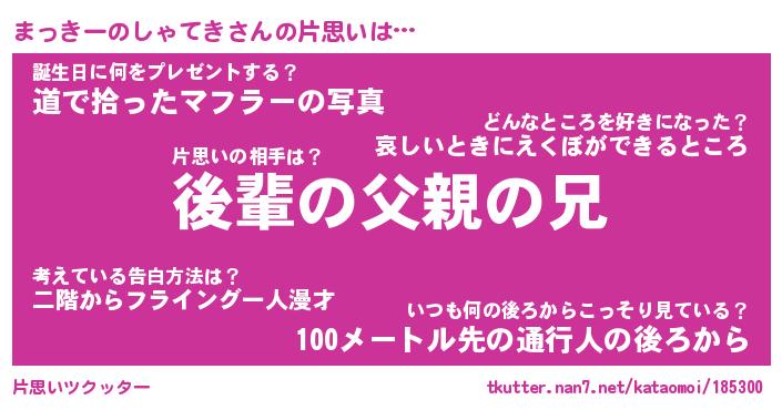 | ツイッター | まっきーのしゃてきさんのツイッターID『namakemono_idle』 |