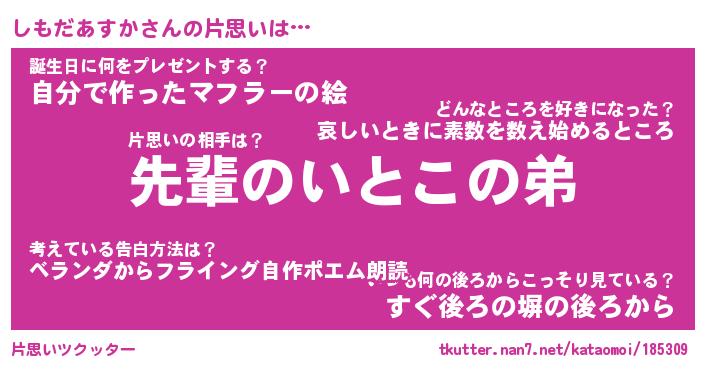 | 男性向けラノベタイトル風あだ名 | 『しもだあすかの憂鬱』 |