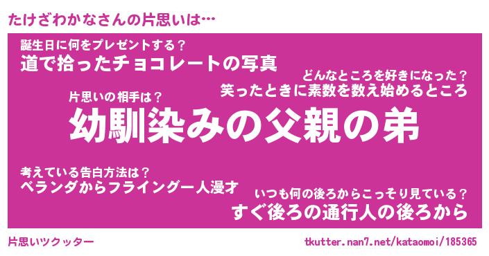 | 胡散臭い通販商品みたいなあだ名 | 『必ず成功するブレスレット…その名も「たけざわかな」』 |