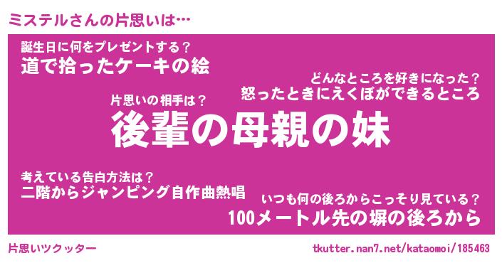 | 意味不明あだ名 | 『ペロリンミステル』『永久保存ミステル』 |