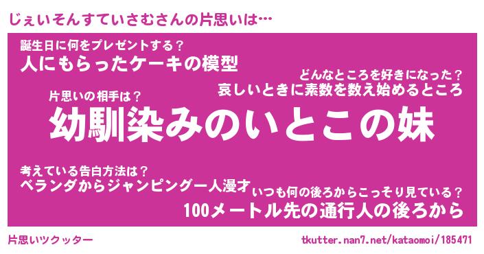| ヘコむあだ名 | 『じぇにゅー』『酢こんぶ』 |