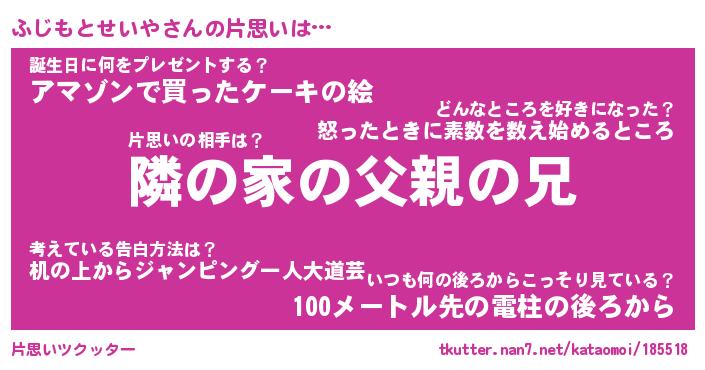 | 胡散臭い通販商品みたいなあだ名 | 『モテモテ間違いなし水晶球…その名も「ふじもとせいや」』 |