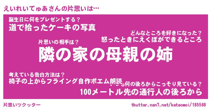 | ヘコむあだ名 | 『えいにー』『牛乳』『えいぷりん』 |