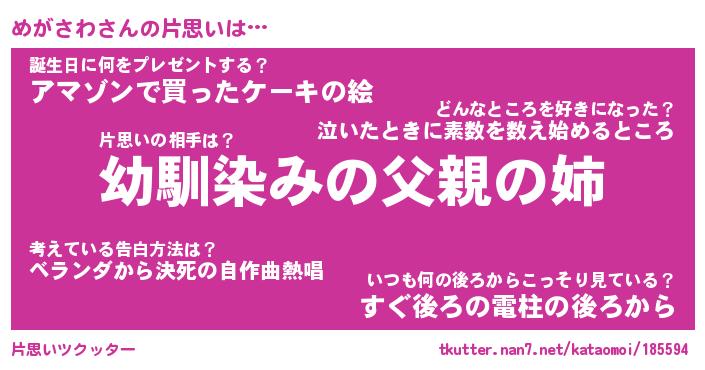 | ヘコむあだ名 | 『めがふぇ~』『なまこ酢』『めがを』 |