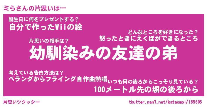 | ポケモン風あだ名 | 『ミラチュウ』『ミラダネ』『ヒミラ』 |