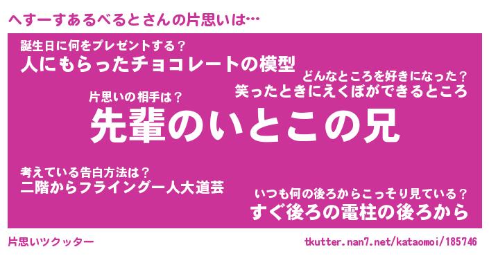 | 胡散臭い通販商品みたいなあだ名 | 『モテモテ間違いなし水晶球…その名も「へすーすあるべると」』 |