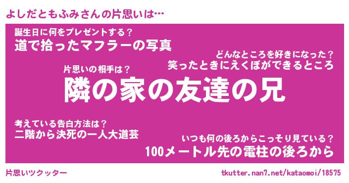 | 肩書あだ名 | 『よしだともふみ御曹司』 |