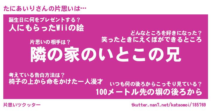 | 胡散臭い通販商品みたいなあだ名 | 『必ず成功する水晶球…その名も「たにあいり」』 |