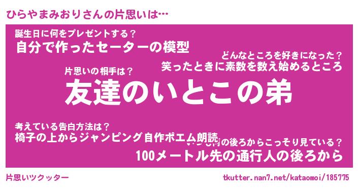 | 恥ずかしいあだ名 | 『プリティーひらやまみおり』『ひらちん』 |