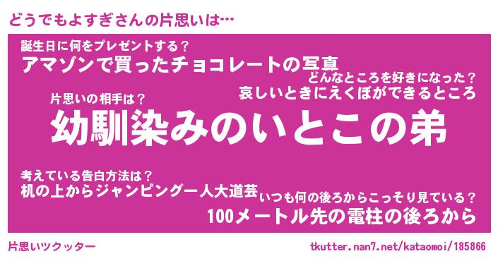 | 胡散臭い通販商品みたいなあだ名 | 『必ず成功する霊験あらたかなお札…その名も「どうでもよすぎ」』 |