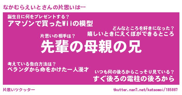| 恥ずかしいあだ名 | 『プリティーなかむらえいと』『なかちん』 |
