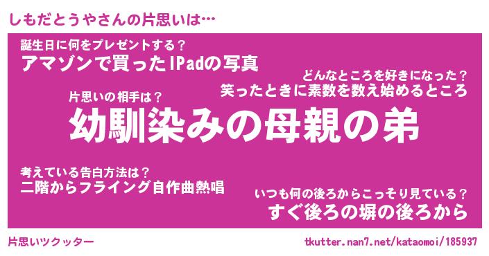 | 胡散臭い通販商品みたいなあだ名 | 『必ず成功するブレスレット…その名も「しもだとうや」』 |