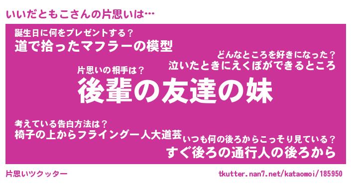| 伝説のあだ名 | 『封印されしスナイパーいいだともこ』 |