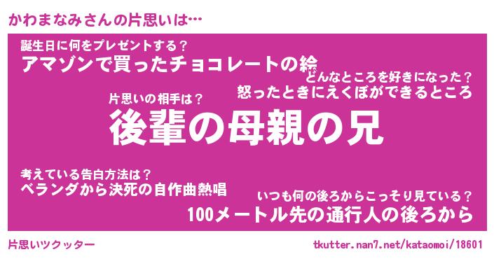 | ヘコむあだ名 | 『かわにー』『牛乳』『かわぷりん』 |