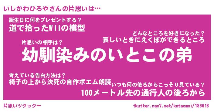 | 男性向けラノベタイトル風あだ名 | 『いしかわひろやの憂鬱』 |