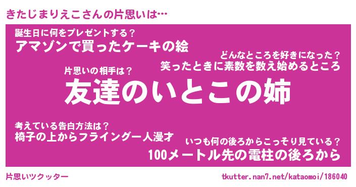 | 女子向けラノベタイトル風あだ名 | 『誰かこのきたじまりえこを説明してください! ~契約から始まるウェディング~』 |